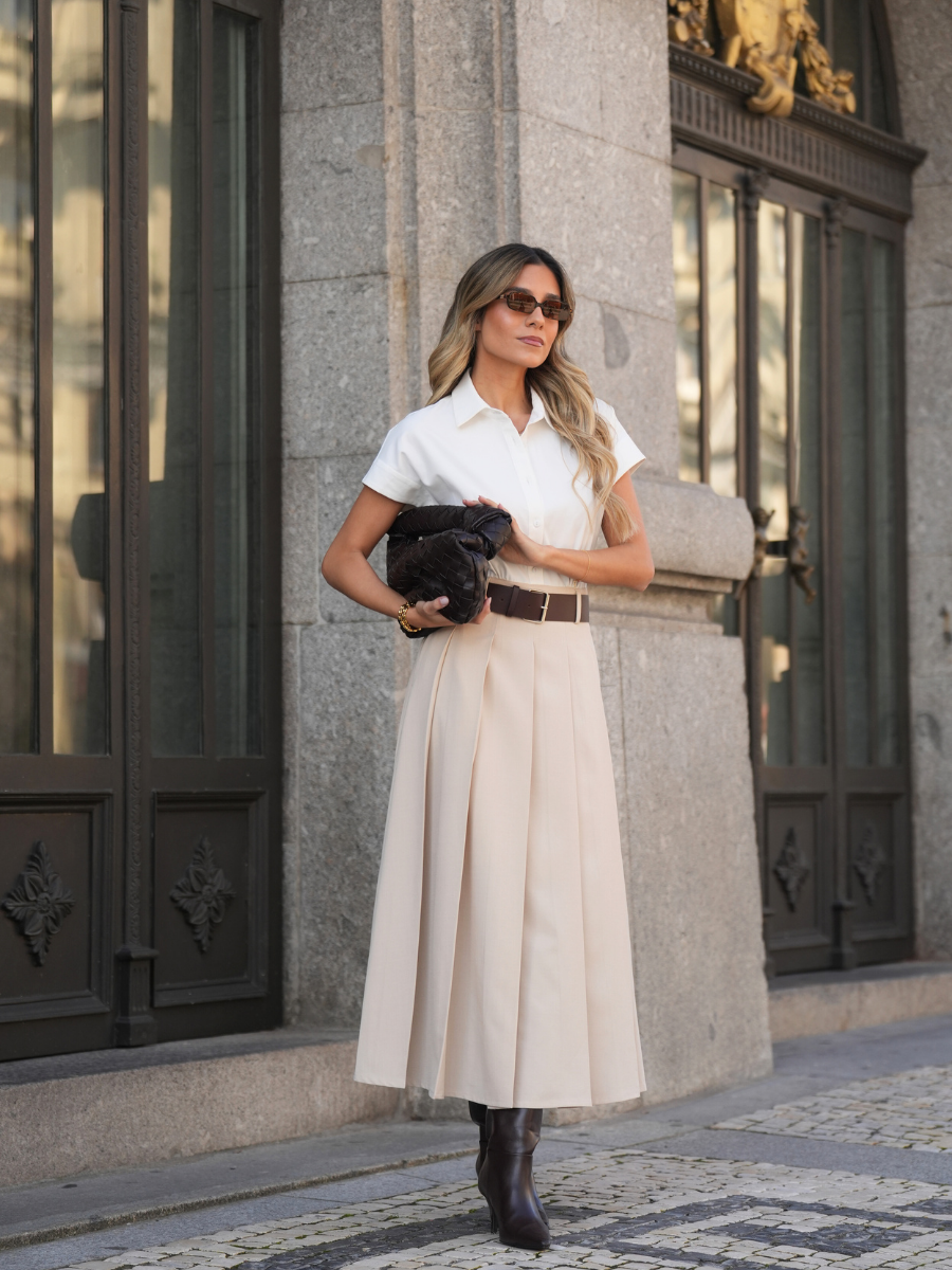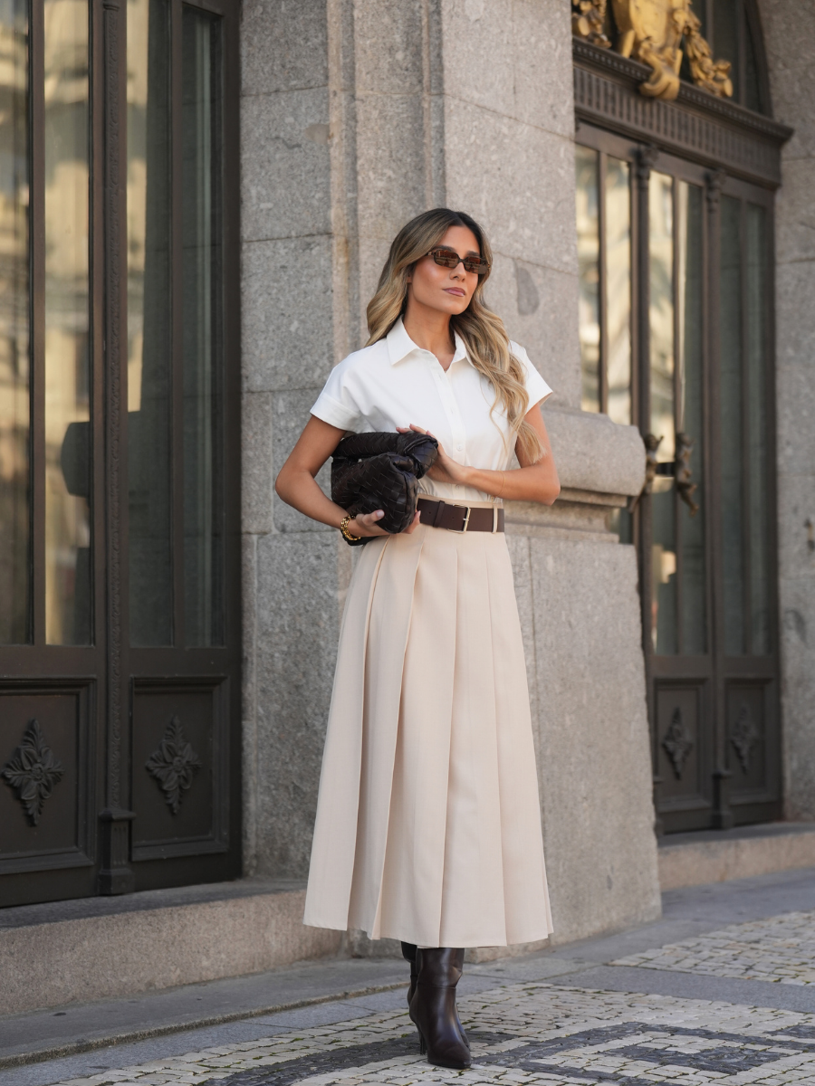 Vestido Camiseiro Bege de Linhas Clássicas