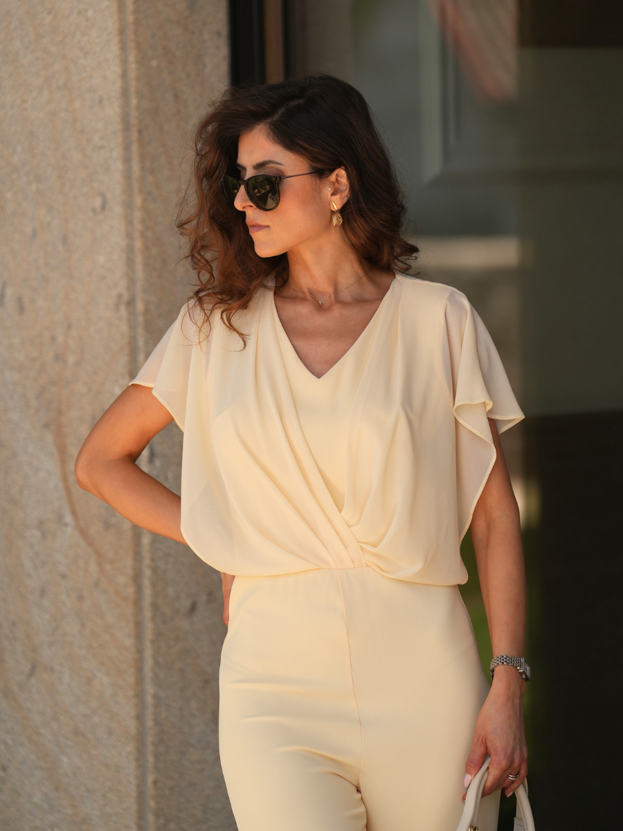 Macacão longo em tecido leve com caimento impecável, que une sofisticação e conforto em uma única peça.