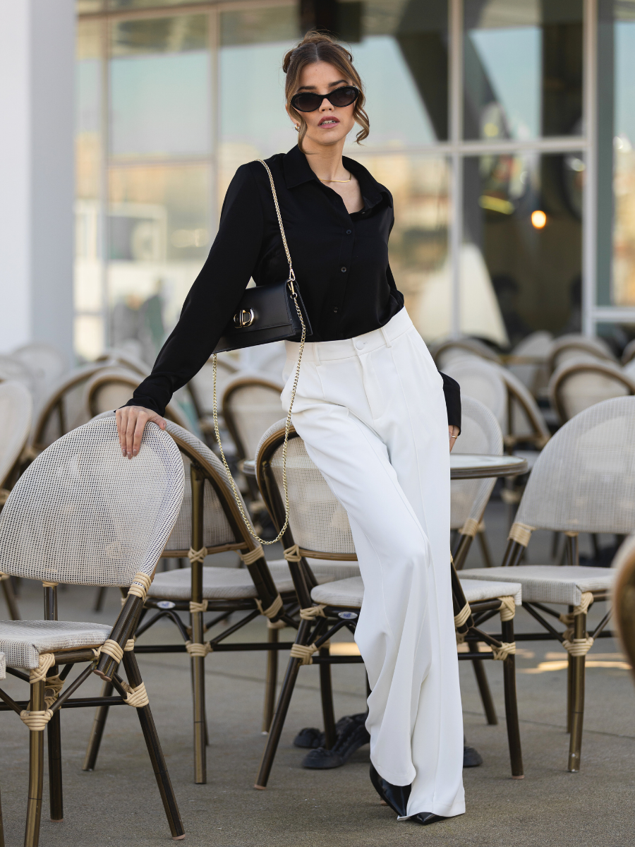 Ideais para conjugar com camisas, blusas ou blazers, estas calças são versáteis o suficiente para ocasiões formais ou produções casuais com um toque de classe.