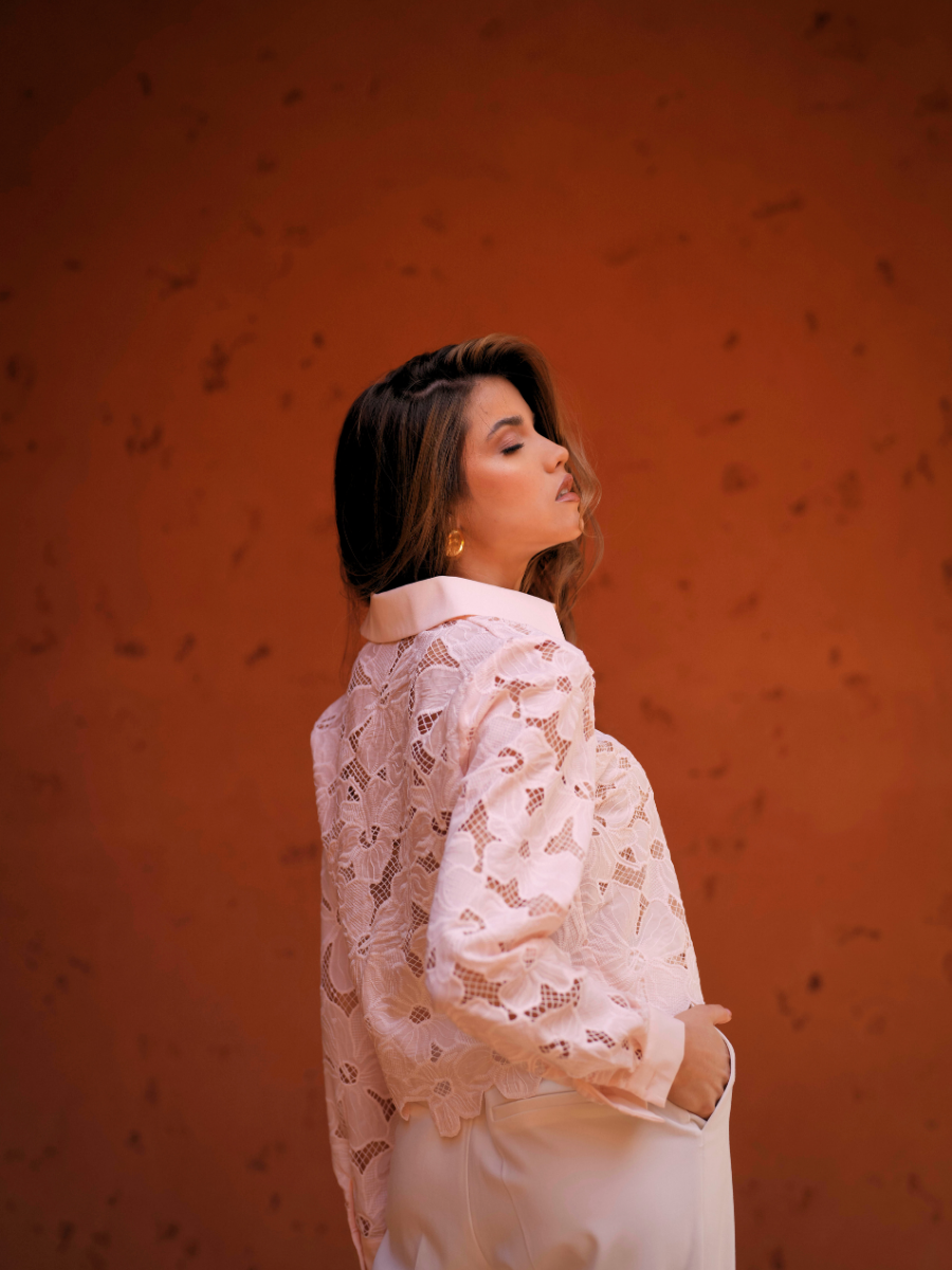 Blusa em tecido acetinado leve, com toque suave e acabamento fluído. Destaca-se pela pala frontal sobreposta, que cria um efeito drapeado elegante, e pela gola clássica estruturada. Apresenta manga comprida com punho e botão, corte solto e queda natural, ideal para looks sofisticados e femininos. Disponível em tons suaves, perfeitos para a estação.