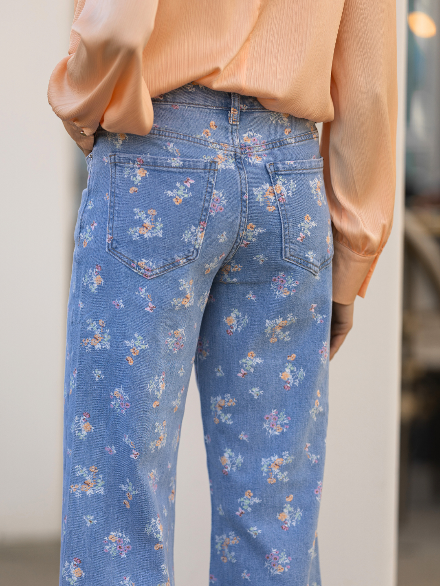 Jeans com Estampado Floral