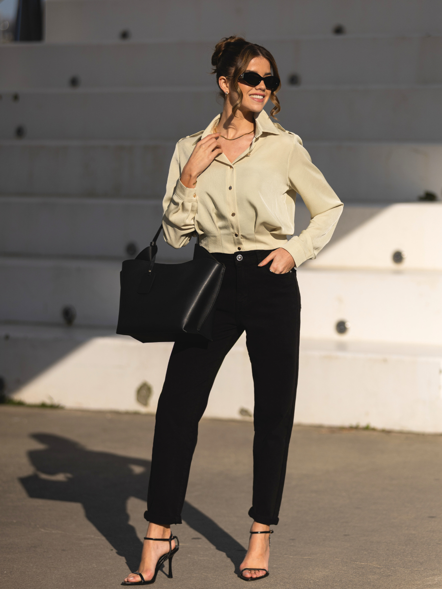 Uma peça versátil com silhueta elegante, ideal para looks urbanos e sofisticados.
