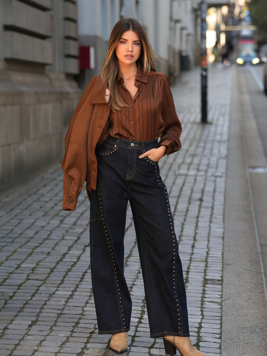 Jeans Wide Leg com Tachas | SPACCIO BY CRISTINA
