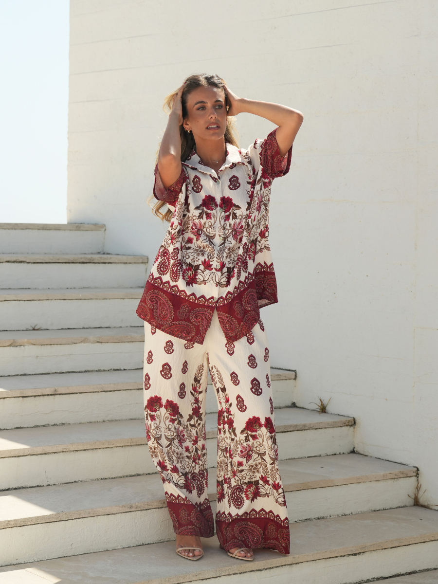 Um conjunto marcante e feminino que alia sofisticação e modernidade. O blazer oversized adiciona elegância à produção, enquanto o top estruturado e as calças fluídas garantem um look contemporâneo e cheio de atitude. Ideal para um evento especial ou para elevar um look do dia a dia.