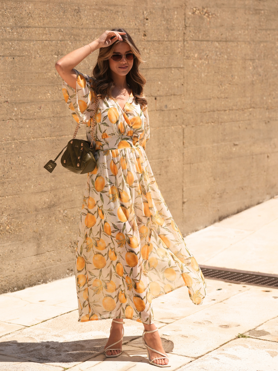 - Vestido comprido com estampado de limões