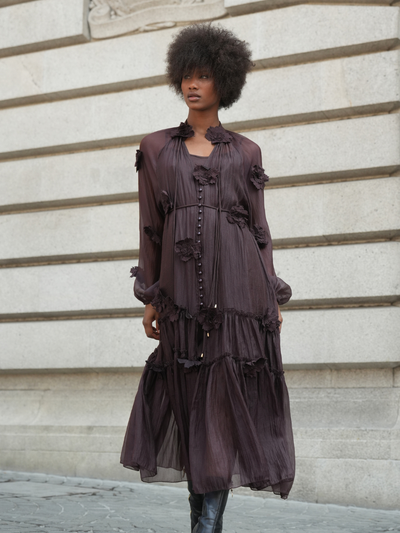Delicado, leve e cheio de movimento — este vestido curto amarelo é a peça ideal para os dias de sol. Com um corte fluido, destaca-se pelos folhos em camadas na saia que conferem um toque romântico e descontraído ao look. A cintura ajustável com cordão valoriza a silhueta de forma confortável, enquanto a manga curta com acabamento franzido adiciona charme ao visual. Os botões frontais e a gola em bico completam o design versátil e feminino, perfeito para um passeio de verão ou um brunch ao ar livre.
